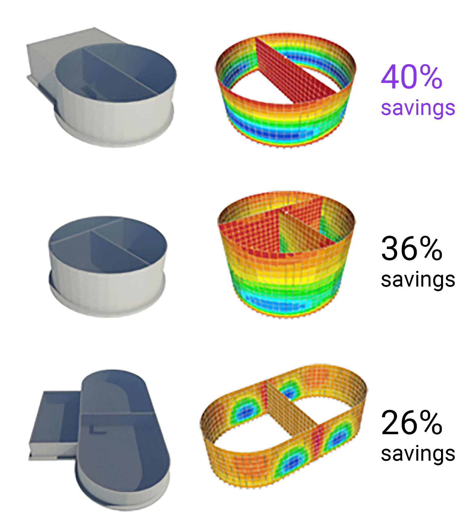 Final optimized output provided for 40% concrete savings for all 39 tanks.